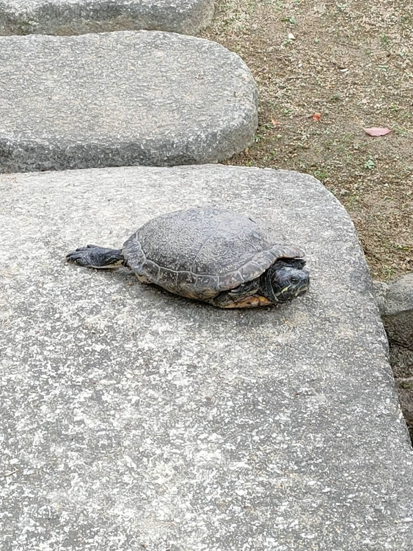 現在は陶器で出来た亀を御霊池に奉納という形式になっておりますが、水神社には本物の亀が数匹いて、甲羅干しをする様子が見られます。🐢